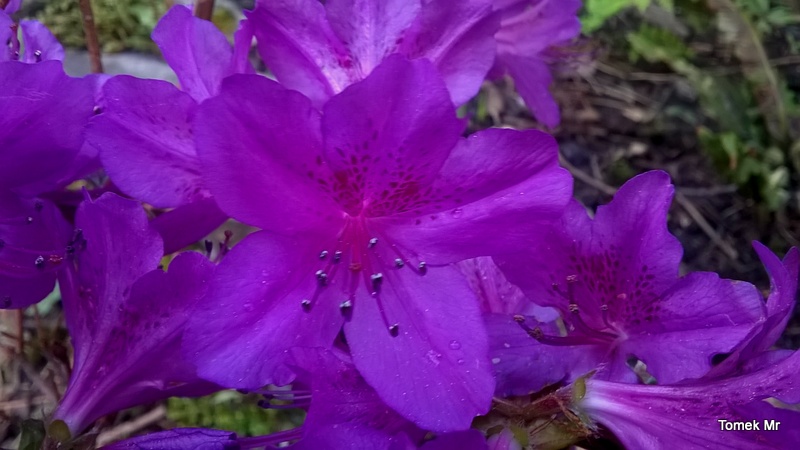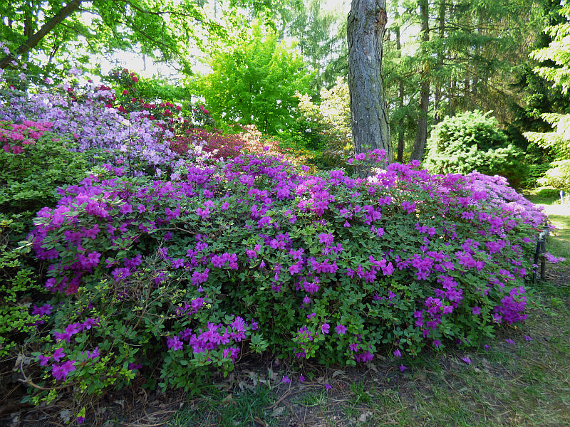 Podczas wizyty w wojsławickim arboretum duże wrażenie wywarła na mnie kolekcja, niewielkich rozmiarowo, czeskich azalii japońskich. Postanowiłam zgromadzić choć część z nich a pierwszą, jaką kupiłam do powstającej kolekcji, była azalia 'Orlice'. W pierwszym roku po posadzeniu byłam nieco zawiedziona wyglądem każdego z trzech krzaczków, które posadziłam w Jędrzejówce: bezładnie rozrzucone gałązki i rzadkie kwiaty zupełnie nie przypominały 'Orlic' z Wojsławic... W opisach wyczytałam, iż pokrój tej azalii jest lużny, ale z biegiem czasu krzewy zagęszczają się samoistnie. Już w drugim roku uprawy zobaczyłam wielką różnicę: ilość dużych, fioletowych kwiatów, zaskoczyła mnie. Było ich co najmniej 2x więcej niż w roku ubiegłym.