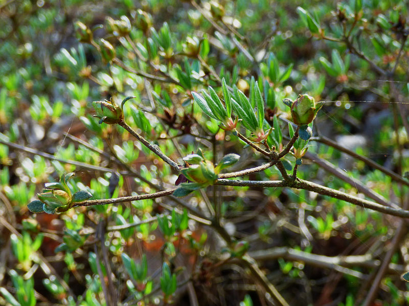 Pąki 'Orlice'... azalii japońskiej z czeskim rodowodem jeszcze ściśle zamknięte i nie pokazują kolorku... za to doskonale widać, jak niewiele listków zimuje na tej azalii... ale nowe już w drodze zwyc