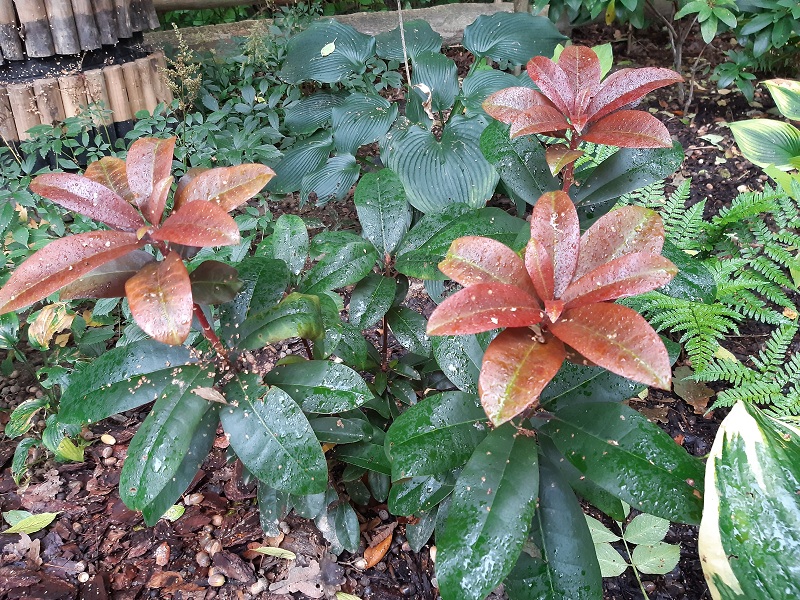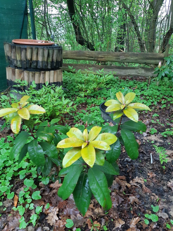 Dwa pędy, od strony lasu nie przyrosły jak trzy pozostałe. Nie wiem, czy są po prostu słabsze, czy tak niewielka różnica w doświetleniu powoduje taką sytuację. Widać też dzięki temu ile przyrosły przez sezon.