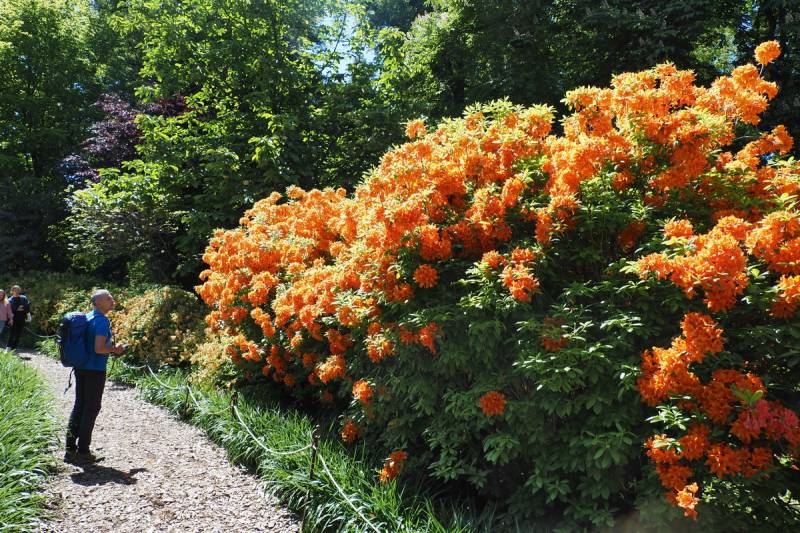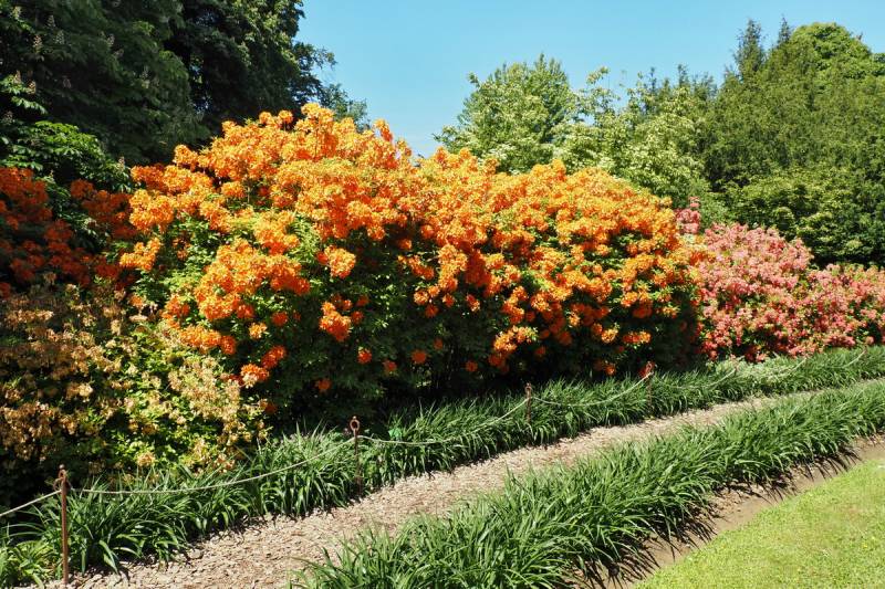 W Wojsławicach, azalia 'Golden Eagle', to jeden z największych krzewów azalii a do tego pokryty burzą kwiatów. Polecam dla osób, które lubią mocne akcenty w ogrodzie, bo widok takiej dojrzałej rośliny jest niesamowity!