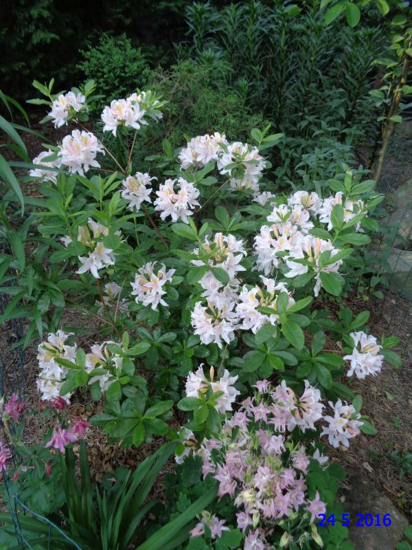 To największa i najstarsza azalia w moim ogrodzie. Co roku kwitnie burzą kwiatów, zapach roznosi się wokól niej nieziemski, jakby goździki....