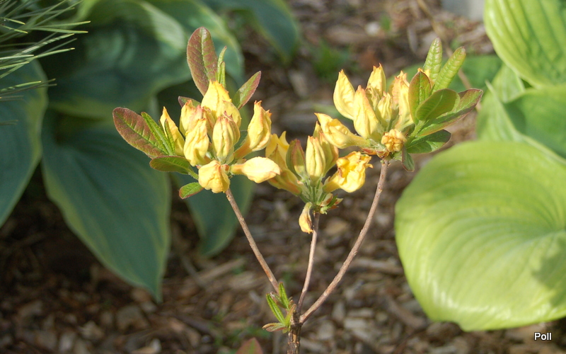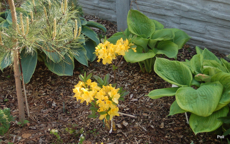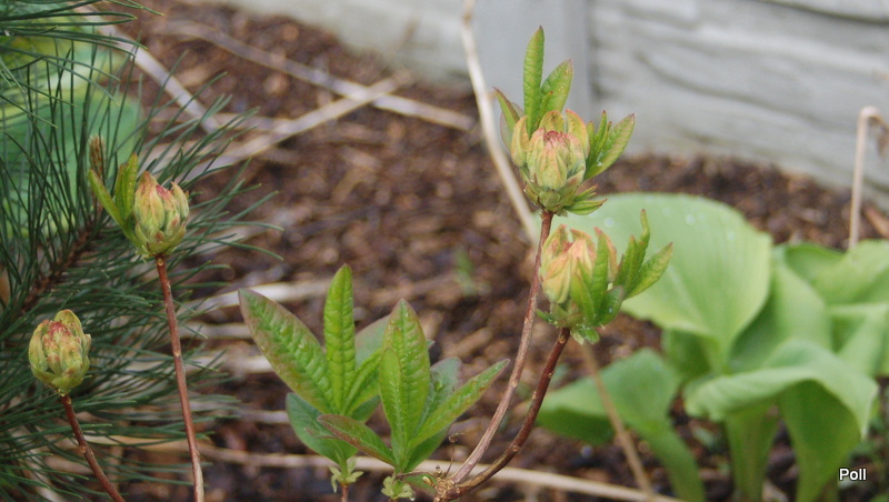 Blisko, coraz bliżej... Azalia 'Limetta' ma już wykolorowane pąki kwiatowe. To młoda roślina, rozpoczyna drugi rok w moim ogrodzie. Rośnie na stanowisku słonecznym, często podlewanym.