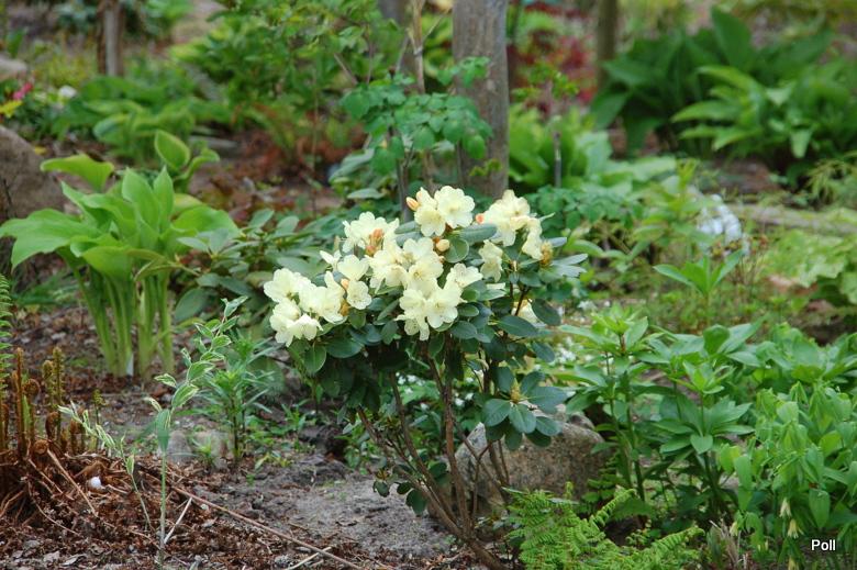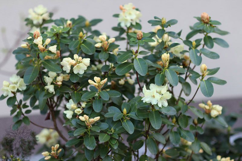 Selekcjoner: Hans Hachmann, Niemcy (wprowadzenie do handlu: 1983) Pokrój: kulisty Siła wzrostu: umiarkowana... po 10 latach dorasta do około 1,10 m wysokości i około 1,20 m szerokości Liście: jasnozielone, lekko błyszczące... jajowate... o długości około 7 cm Kwiaty: w pąku pomarańczowe, po otwarciu czysto żółte, następnie cytrynowożółte z nielicznymi purpurowymi cętkami na górnym płatku... dzwonkowate... średnica pojedynczego kwiatu około 5 cm... zebrane po 9-12 sztuk w luźne, wierzchołkowe kwiatostany Termin kwitnienia: pierwsza połowa maja Mrozoodporność: do -20 °C (Hachmann)/ -23 °C (ARS) ---> zaleca się okrywanie na zimę Wyróżnienia: Srebrny Medal: BUGA Berlin 1985