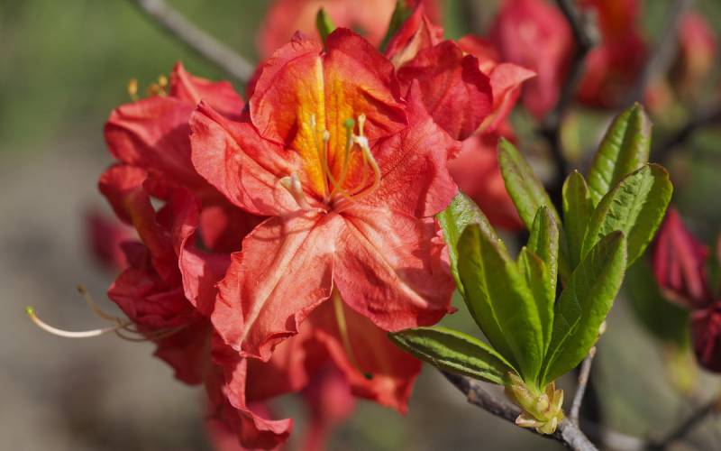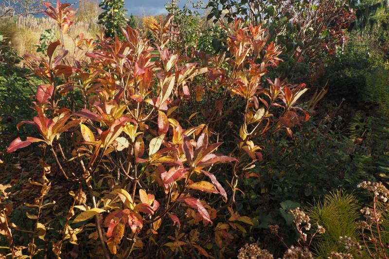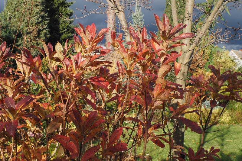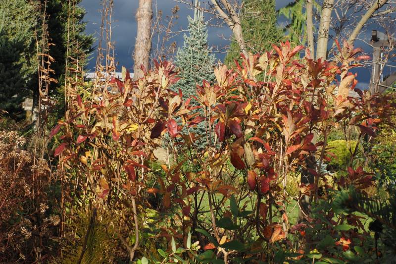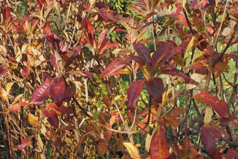 Liście: sezonowe, jasnozielone, z wierzchu pokryte włoskami... jesienią przebarwiają się na pomarańczowo czerwono