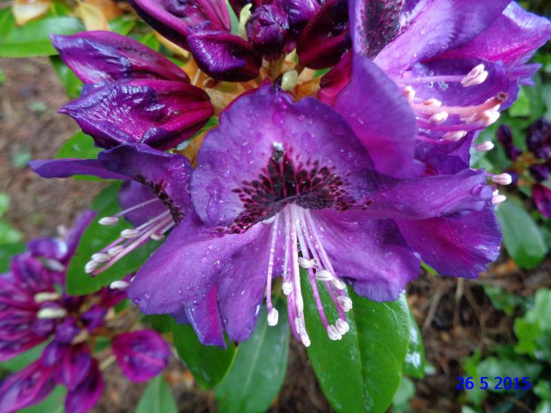 Selekcjoner: Hans Hachmann, Niemcy (wprowadzenie do handlu: 2001) Pokrój: szeroki, wyprostowany Siła wzrostu: umiarkowana... po 10 latach dorasta do około 1,20 m wysokości i osiąga około 1,40 m szerokości Liście: ciemnozielone... wąsko eliptyczne... o długości do 13 cm przy szerokości do 5 cm Kwiaty: głęboko purpurowo fioletowe, w środku gardzieli jasnofioletowe z wyraźnym, czarno brązowym rysunkiem na górnych płatkach... brzegi płatków delikatnie pofalowane... lejkowate... duże, średnica pojedynczego kwiatu od 7 do 8 cm... zebrane po około 18 sztuk w kuliste, wierzchołkowe kwiatostany Termin kwitnienia: przełom maja i czerwca Mrozoodporność: do -22 °C (Ciepłucha; Hachmann)