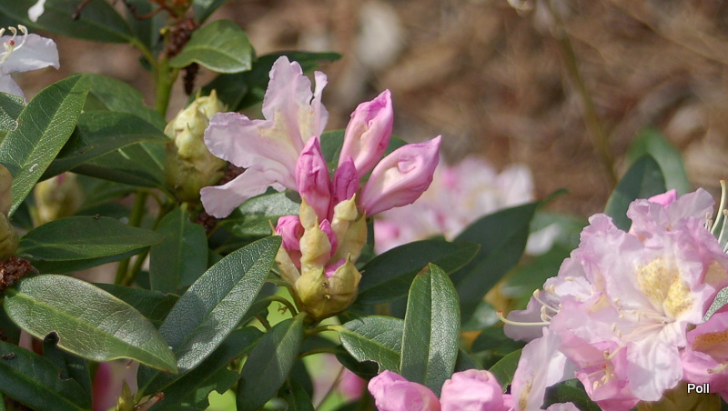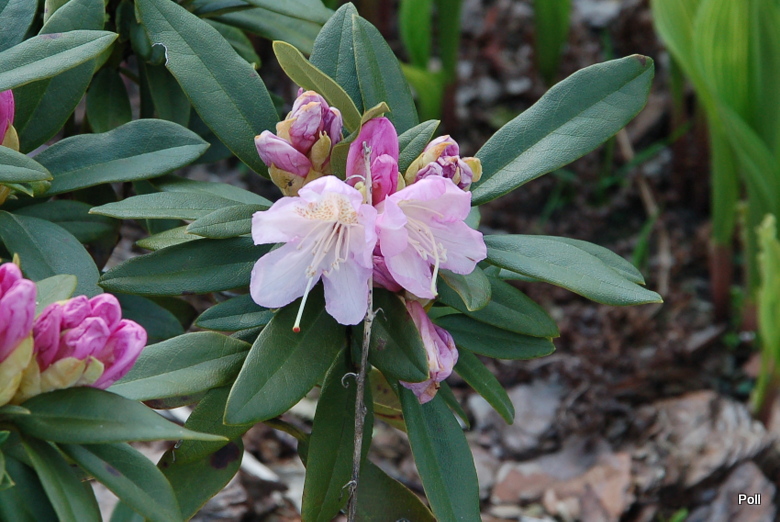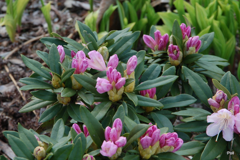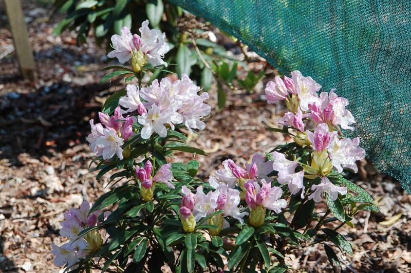 'Cunningham's Blush' ,to jeden z niezawodnych różaneczników, które ładnie przyrastają i obficie kwitną. Jego liście są stosunkowo nieduże, więc sprawia wrażenie delikatnego.