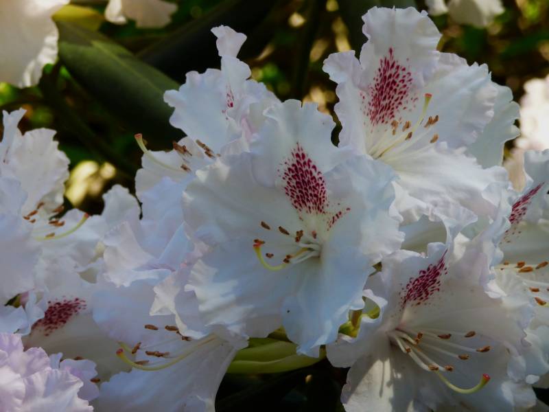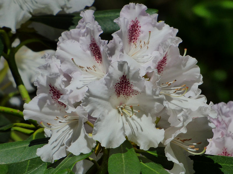 Kwiaty: w pąku jasnoróżowoliliowe, po otwarciu jasnoliliowe, z czasem białe z delikatną różowawą tonacją i z wyraźnym, winnoczerwonym rysunkiem na górnym płatku... brzegi płatków mocno pofalowane... średnica pojedynczego kwiatu od 6 do 6,5 cm... zebrane po 11-18 sztuk w duże i szerokie, wierzchołkowe kwiatostany