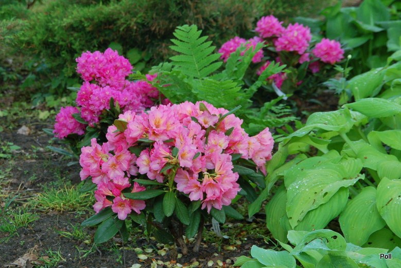 To już szczyt kwitnienia różanecznika 'Saltarello'. Gdy kwiaty uschną, powędruje na wilgotniejsze i jaśniejsze stanowisko.