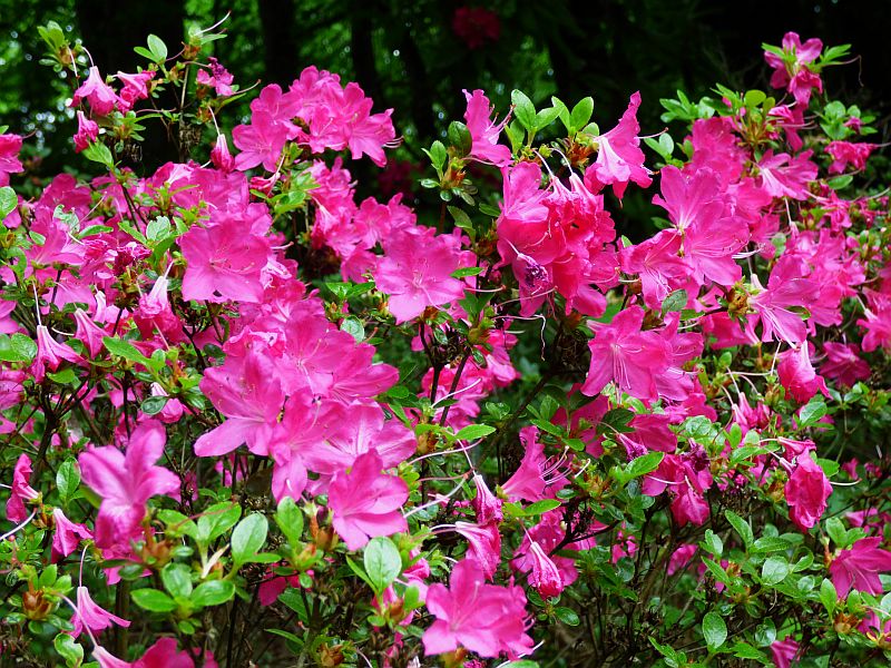 Azalia japońska 'Kermesina' zaczyna, bezproblemowa odmiana i niezawodnie kwitnie.