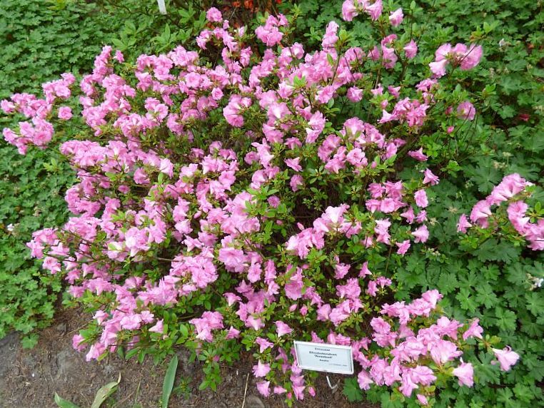 Selekcjoner: Joseph Benson Gable, USA (wprowadzenie do handlu: 1947) Pokrój: zwarty, poduszkowaty Siła wzrostu: roślina wolnorosnąca (karłowa)... po 25 latach dorasta do około 1,20 m wysokości Liście: półzimozielone... jasnozielone, lekko błyszczące... brzeg liścia i ogonek liściowy pokryte szczeciniastymi włoskami... o długości do 2,5 cm Kwiaty: jasnoróżowe... średnica pojedynczego kwiatu do 3 cm.... pełne, wyglądem przypominające małe różyczki... wąskolejkowate... bardzo liczne, zebrane po 2 sztuki na szczytach pędów Termin kwitnienia: przełom maja i czerwca Mrozoodporność: do -23 °C (Ciepłucha) acz panuje opinia, że jest to odmiana dość wrażliwa na mróz ---> wymaga zacisznego stanowiska i dobrego okrycia na zimę Wyróżnienia