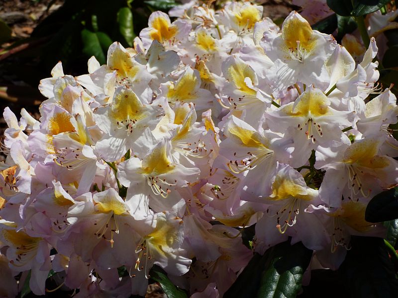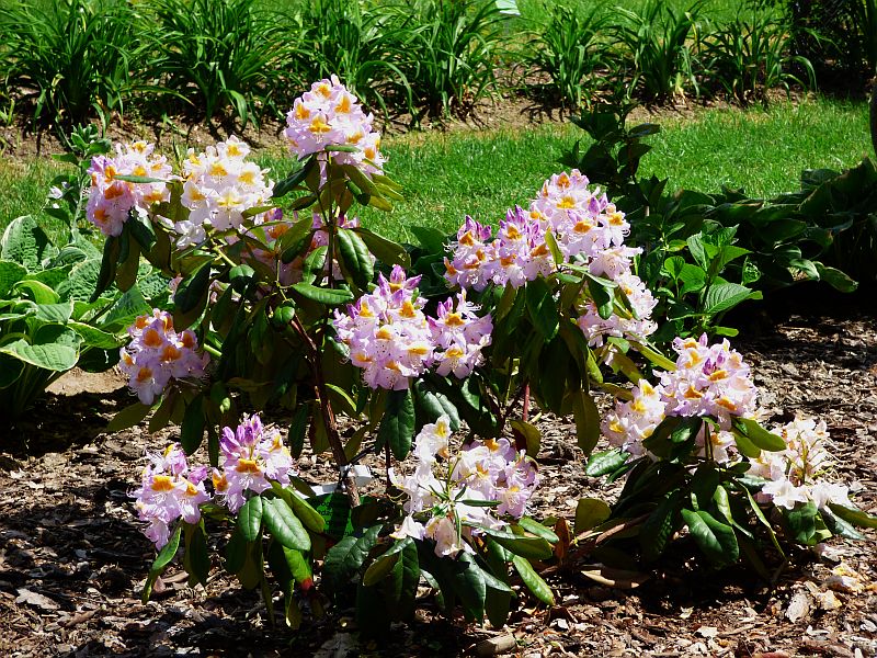 Madame Jules Porgès należy do tych późno kwitnących... 1 czerwca kiedy to większość rododendronów w Wojsławicach okres świetności miała już za sobą, on dopiero się rozkręcał;