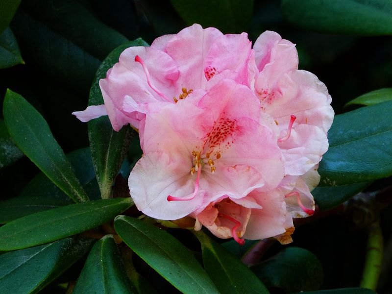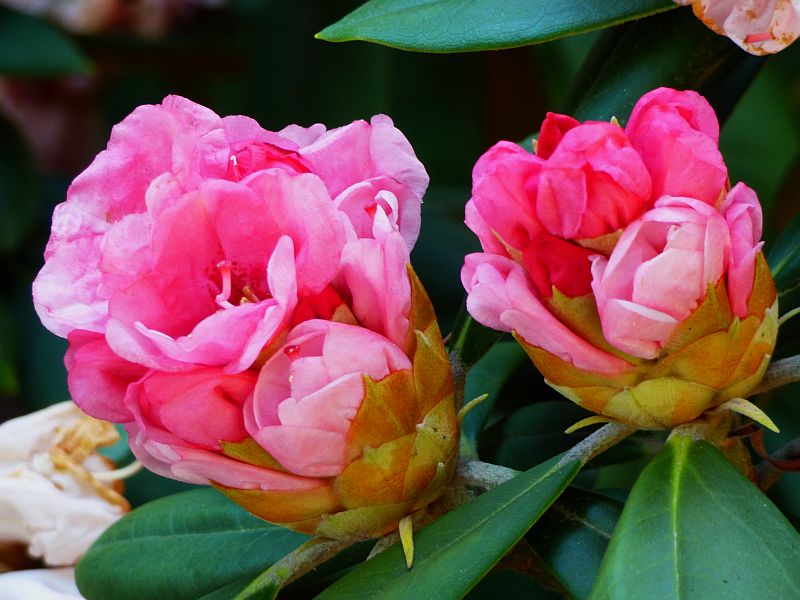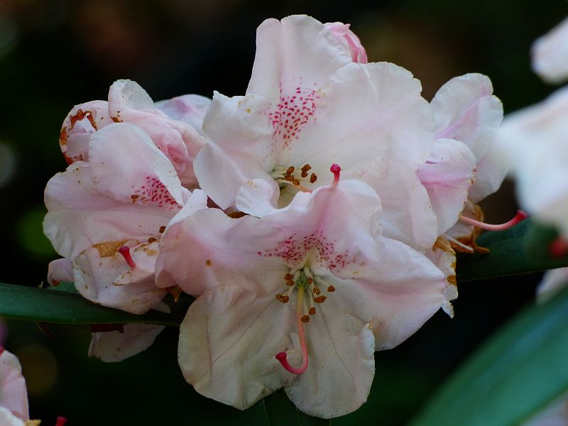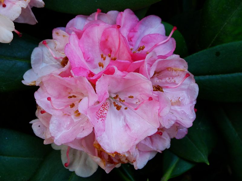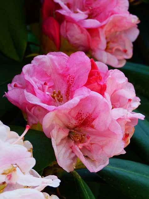 Pochodzenie: Szkółka D. Heinje, Niemcy (wprowadzenie do handlu: 1965) Pokrój: poduszkowaty Siła wzrostu: roślina wolnorosnąca... po 10 latach dorasta do około 0,70 m wysokości i około 1,20 m szerokości Liście: ciemnozielone... eliptyczne Kwiaty: w pąku jasnoczerwone, po otwarciu różowe, z czasem jaśniejące do niemal białego z delikatnym, czerwonawym rysunkiem na górnym płatku... brzegi płatków pofalowane... zebrane w kuliste, wierzchołkowe kwiatostany Termin kwitnienia: przełom maja i czerwca Mrozoodporność: do -18 °C (Heinje)