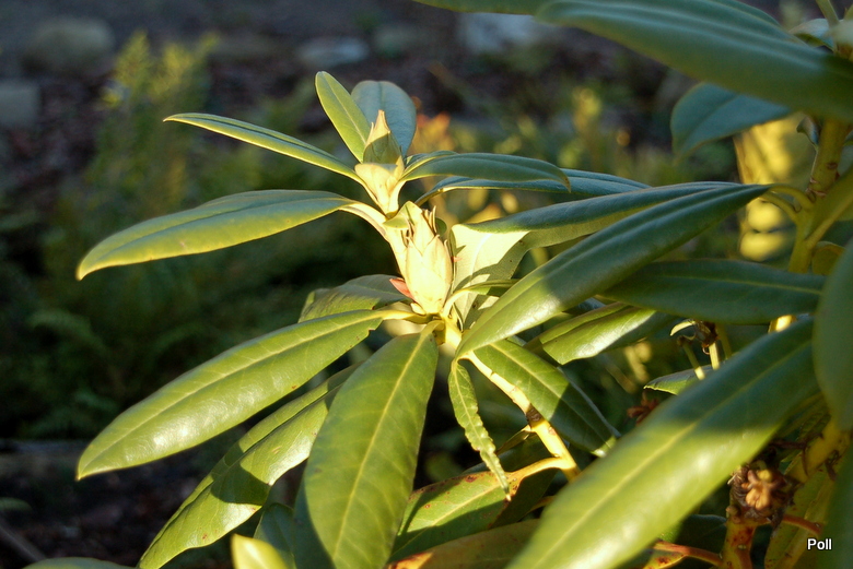 Różanecznik 'Mogambo' szykuje się do kwitnienia niemal miesiąc wcześniej, niż w ubiegłym roku krecigl