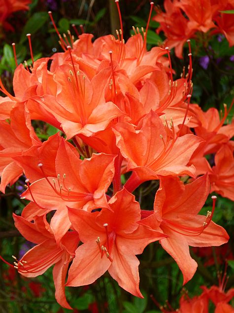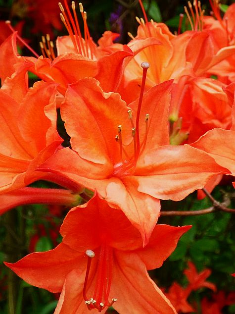 Kwiaty: czerwonawopomarańczowe z delikatną, pomarańczową plamką na górnym płatku... lejkowate... średnica pojedynczego kwiatu około 5 cm... zebrane po 7-10 sztuk w kuliste, wierzchołkowe kwiatostany