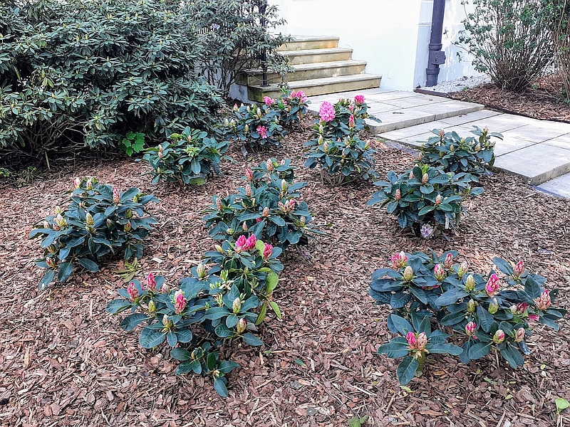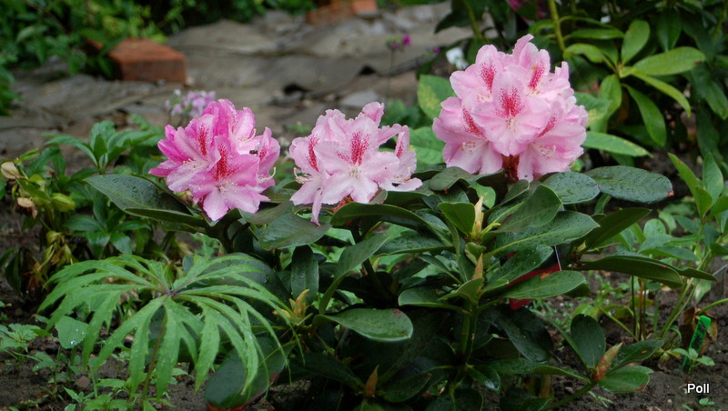 Mam pewien kłopot z tym rodkiem, ponieważ na oczy widziałam go raz, ale z uwagi na porę kwitnienia wcale nie miałam pewności, czy jest to właśnie ta odmiana... jednak zważywszy, że zeszły sezon zaczął się dość wcześnie a nasadzenie było młode, więc być może podpędzone w szkółce, i do tego tylko po części już rozpoczynające kwitnienie, doszłam do wniosku, że owszem, to Furnivall's Daughter'... acz jestem otwarta na inne sugestie