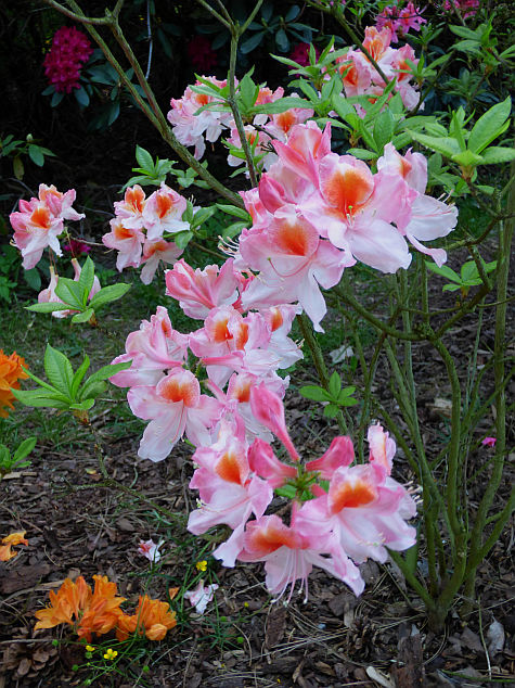 Selekcjoner: brak danych Pokrój: krzaczasty Siła wzrostu: brak danych Liście: sezonowe, jasnozielone Kwiaty: w pąku różowe, po otwarciu bladoróżowe z bardzo dużym, intensywnie pomarańczowo żółtym oczkiem rozlewającym się na trzech górnych płatkach... brzegi płatków lekko pofalowane... szerokolejkowate... duże... zebrane w kuliste, wierzchołkowe kwiatostany Termin kwitnienia: połowa maja Zapach: niewyczuwalny Mrozoodporność: brak danych
