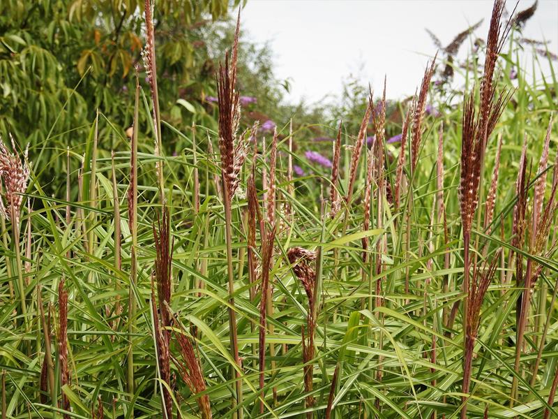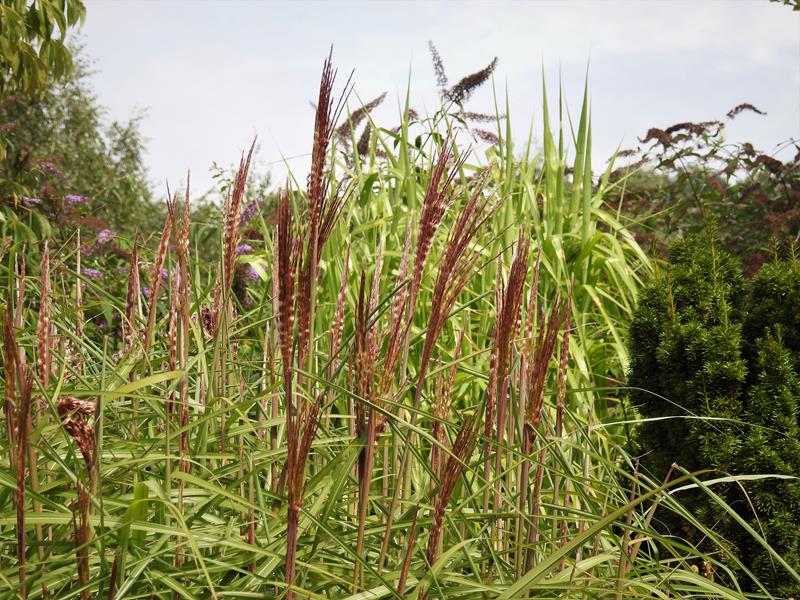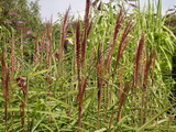 Odmiana dorastająca z kwiatostanem do 1,80-2 m. wysokości. Pokrój: wyprostowany, łukowato wygięty. Liście: zielony, przy niskich temperaturach mogą wybarwiać się na purpurowo. Kwiatostany: z początku czerwone, z biegiem czasu przebarwiają się na brązowo, aby w końcu stać się srebrzyste. Pojawiają się od września do października. Stanowisko: słoneczne lub lekko ocienione, umiarkowanie wilgotne.