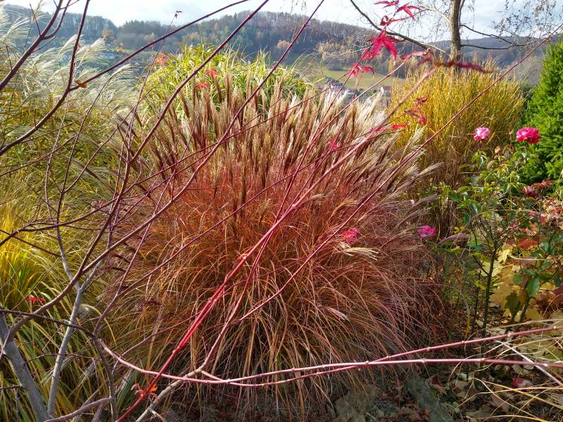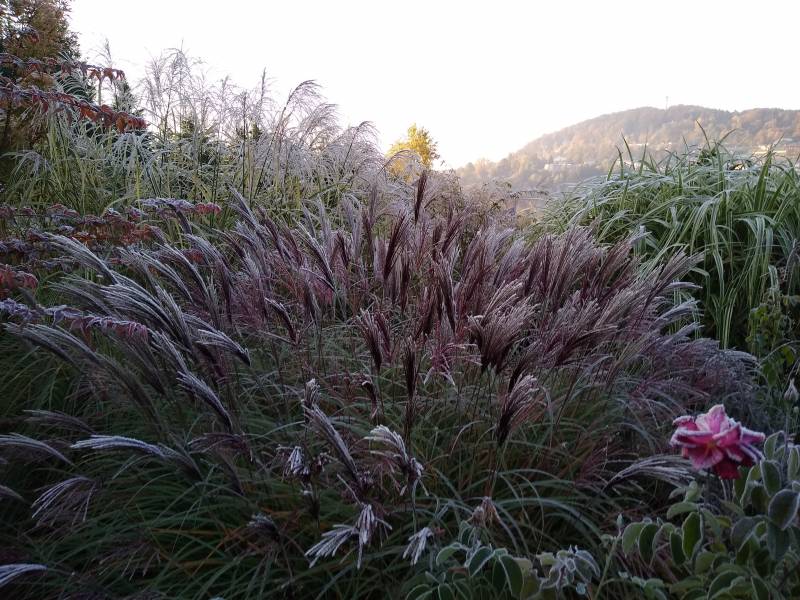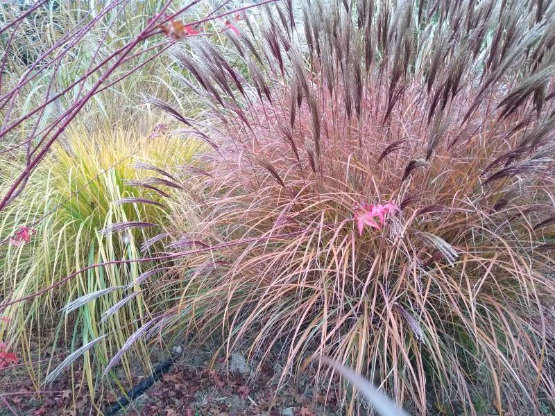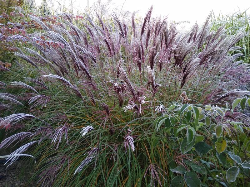 Wysokość - do 100 cm. Liście - wąskie , zielone , w październiku przebarwiają się na kolorowo , Kwiaty - 20 - 30 cm ponad liśćmi , początkowo różowo bordowe , później smukłe ,rudo brązowe
