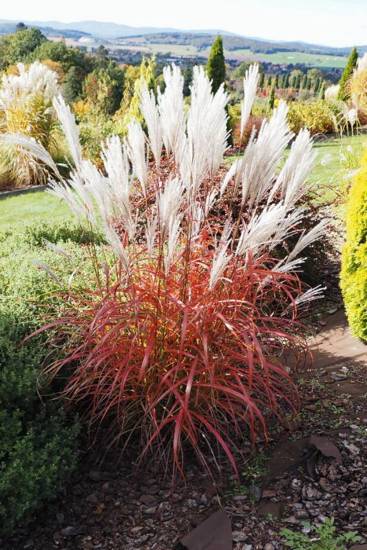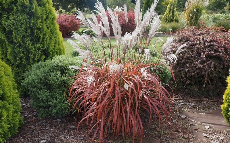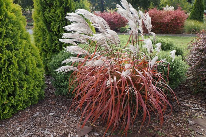 Na wystawie „Zieleń to życie” we wrześniu 2024 r. miskant chiński ‘Lady in Red’