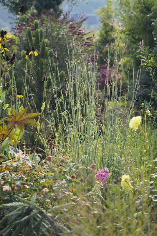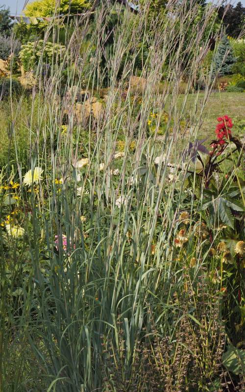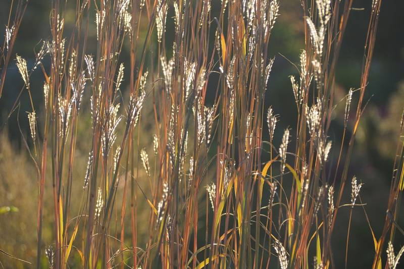 Kapitalnie wybarwiająca się niemal na turkusowo, trawa ozdobna z rodziny Poaceae, kultywar ogrodowy nie mniej ciekawego gatunku Andropogon gerardii - świetna na suche, słoneczne stanowiska