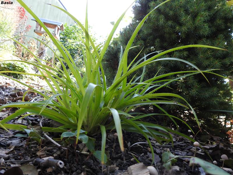 Luzula sylvatica, również gatunek, jak w poście Konrada. Rosnie u mnie od wielu lat...Wiedziałam, że gdzies jest, al e znaleźć nie mogłam rotfl Okazało się, że wysadziłam ja za skalna górką, pod jakieś płożace iglaki.Roslina z rodzaju "wysadzisz, samo rośnie'. Niepodlewana, nieczyszczona krecigl , odporna, jak licho. Zero wymagań.Nie rozłazi się, trzyma się kępy.