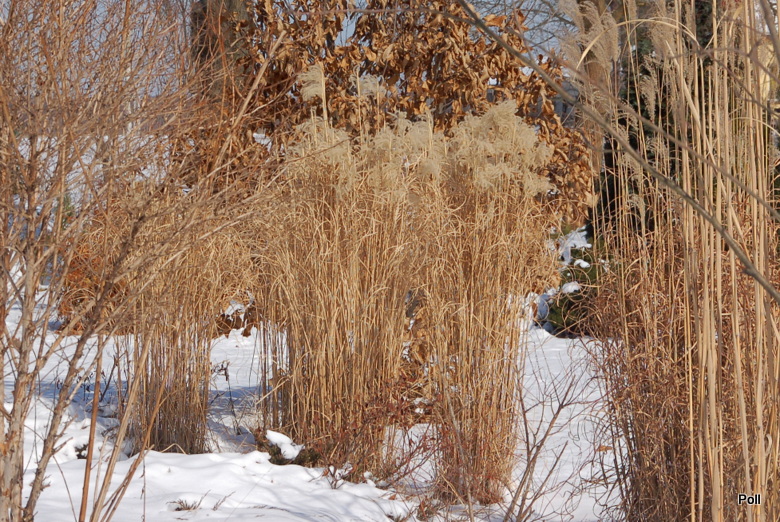 Suche kwiatostany Gracillimusów zdobią Jędrzejówkę do dziś, ale niesamowicie wyglądały, gdy spadł śnieg (foto18.03.2018r)