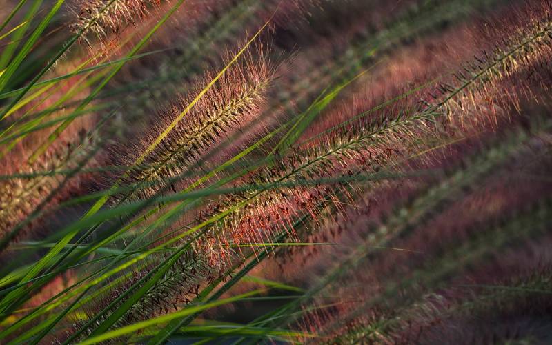 Rozplenica japońska (Pennisetum alopecuroides) 'Red Head' w jesiennej odsłonie.