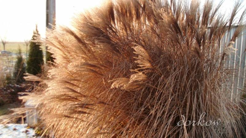 Uwagi w grupie miskantów nadaje się na pierwszy plan ze względu na kształt kępy, doskonały jako niski soliter !