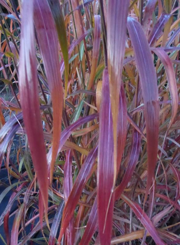 Dodam, że mają biały pas, biegnący wzdłuż głównego nerwu. Biel ta stopniowo staje się mało widoczna wraz z upływem sezonu.Także łodygi -nie tylko liście- przybierają pod jesień czerwonawą barwę