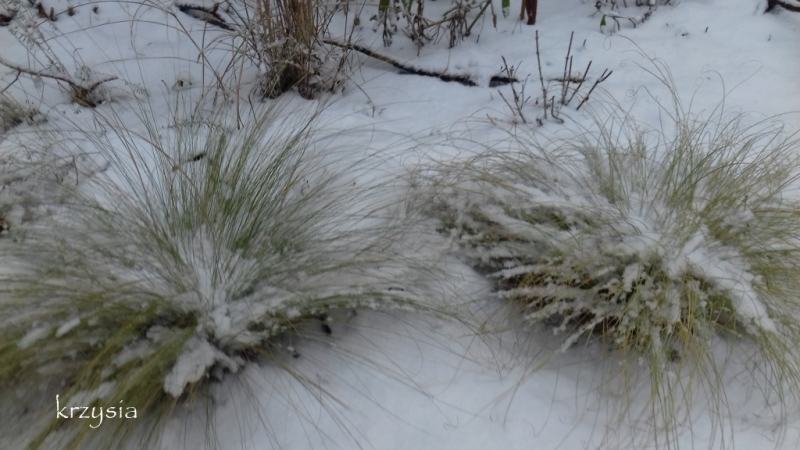 Turzyca włosista 'Frosted Curls' w drugim roku uprawy pięknie się rozbudowała. Nie była zabezpieczona na zimę w żaden sposób.