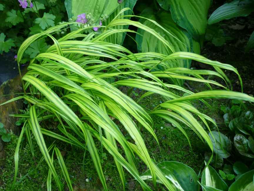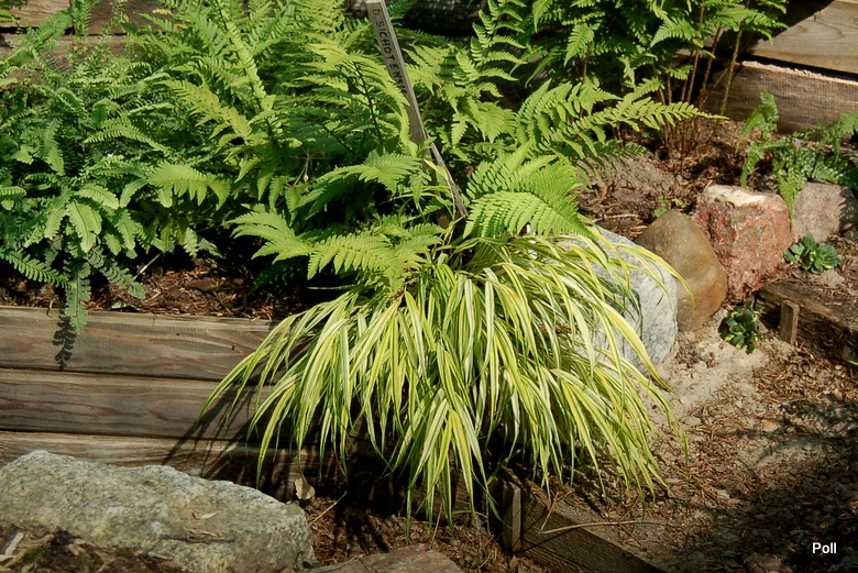 Haconechloa Aureola, rośnie u mnie trzeci rok pod lasem liściastym, w cieniu, w ziemi gliniasto próchniczej. Tempo wzrostu bardzo wolne.
