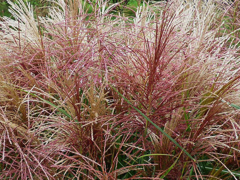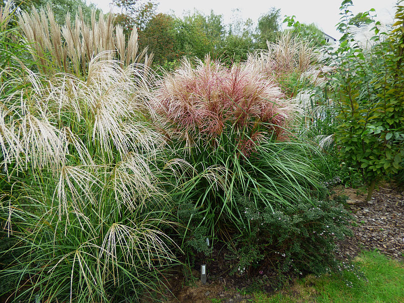 Miscanthus sinensis 'Polonus' w ogrodzie pokazowym przy Szkółce Roślin Ozdobnych DAGLEZJA w Rykach