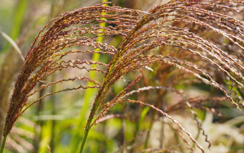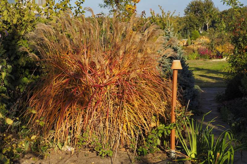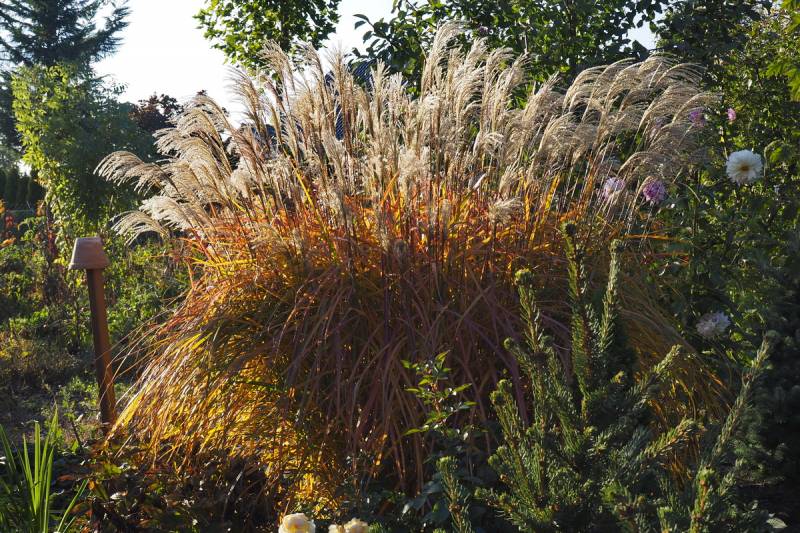 Wysokość: raczej niski, z kwiatostanem do 1,70 m Liście: jasnozielone, wąskie, jesienią żółto - pomarańczowe, pokrój łukowaty Kwiatostany: ciemno-purpurowe przewieszające się karbowane, później łapią pomarańczowe akcenty, przekwitając jaśnieją. Kwitnie bardzo obficie od końca sierpnia. Wymagania: ziemia umiarkowanie żyzna i umiarkowanie wilgotna... stanowisko słoneczne Mrozoodporność: strefa 5b