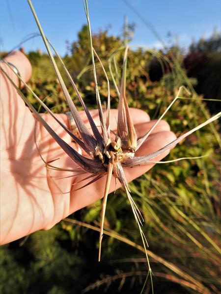 Przyjemna dla oka trawa, ale, jak dla mnie trochę za bardzo się rozsiewa. Źródła podają dla tej odmiany słabą mrozoodporność (-12°C). U mnie zarówno roślina mateczna, jak i siewki zimują znakomicie bez okrywania.