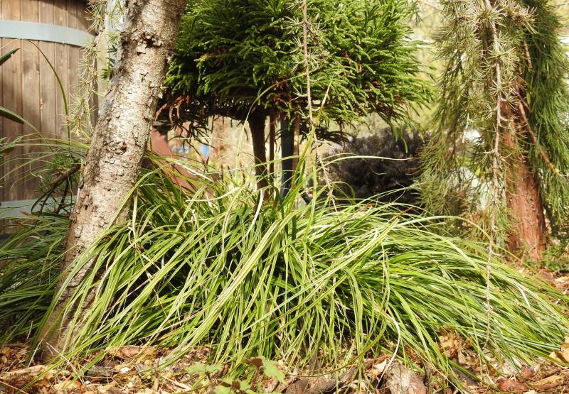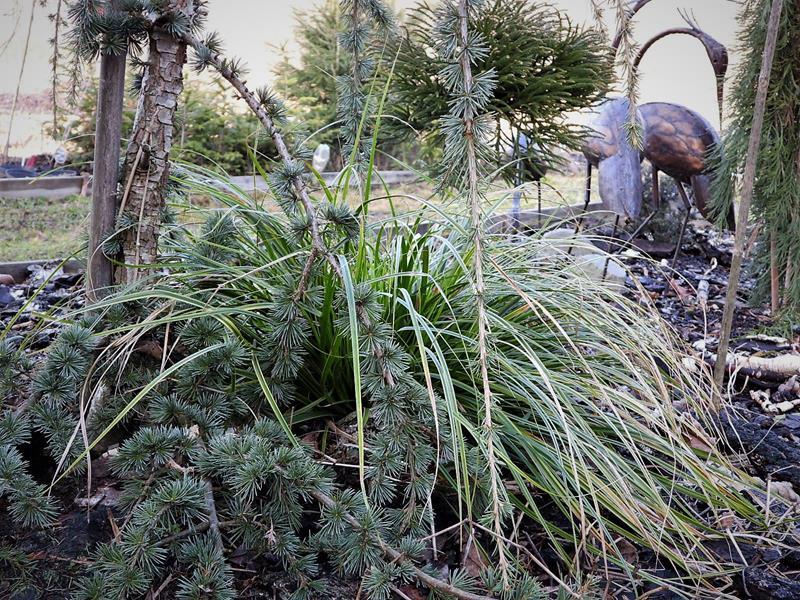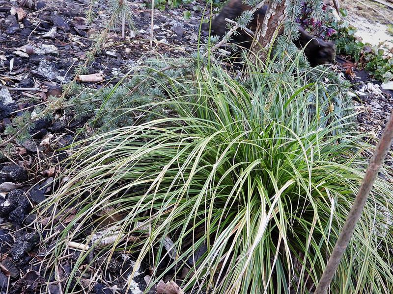 Nie wycinam w tym sezonie liści turzycy 'Everlime', bo ładnie wygląda po zimie.