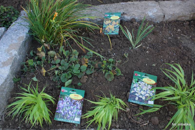 To jest fotka z zakładania z tekturowym opisem sadzonych roślin, za juką te tulipanki...