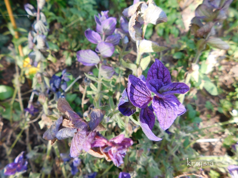 Słuszne miałaś podejrzenia :lol: , to szałwia trójbarwna. Mogła Ci się trafić tez sadzonka kwitnąca na biało lub różowo. Jest niestety krótkowieczna, ale sieje się masakrycznie :silly: . To znaczy u mnie 2smiech . Kiedyś posadziłam z 5 roślinek z własnoręcznie wyhodowanej rozsady i teraz mam ją wszędzie każdego lata. Część sadzonek wyrzucam, część oddaję, a część rośnie i kwitnie i nawet się czasem ładnie komponuje rotfl
