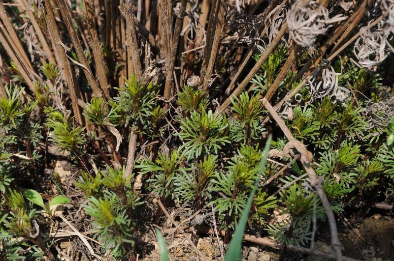 4. Niski krzaczek, młode listki palczasto-pierzaste