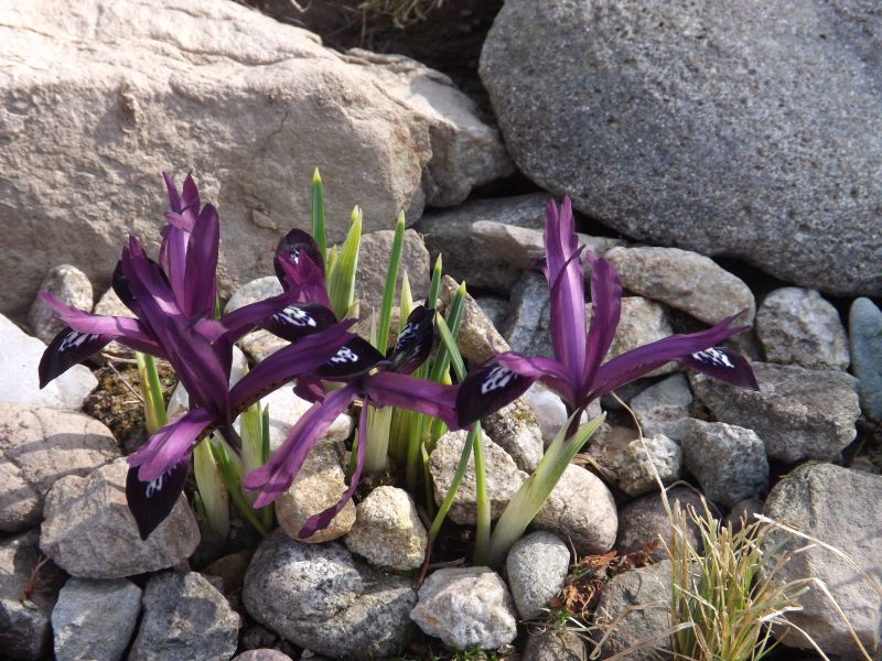Hermodactyloides hojnie stosować kompost i żwir. Ten ostatni rzecz jasna na drenaż. Przestrzegała przed stosowaniem torfu (jak najbardziej słusznie), nawet odkwaszonego, bo wiąże wodę w glebie także latem, kiedy te irysy muszą mieć sucho jak na Saharze. To naprawdę były dobre rady! Jak pisałam, większość irysów z tego podrodzaju, a na pewno wszystkie te uprawiane w naszych ogrodach, kwitnie bardzo wcześnie. To dobre towarzystwo dla ranników i przebiśniegów.
