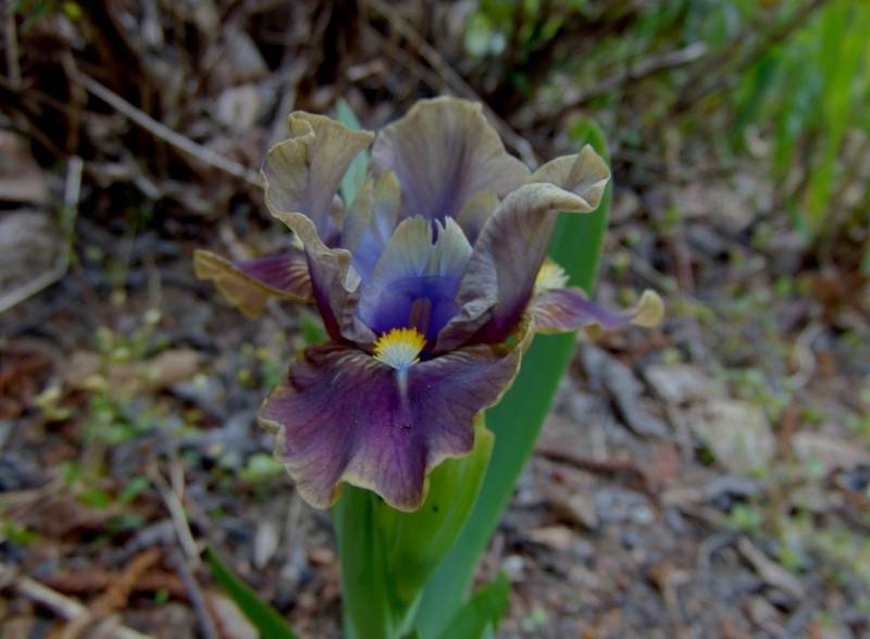Iris balkana. Gatunek dorastający do trzydziestu cm wysokości, wcześnie kwitnący irys, o kwiatach występujących w dwóch kolorach - żółtym i purpurowym. Ma charakterystycznie wysoko sklepioną kopułę i podwijające się płatki dolne. Na początku XX wieku był namiętnie krzyżowany z innymi gatunkami irysów, jest uznawany za jednego z protoplastów irysów SDB.