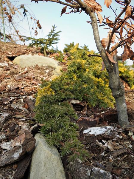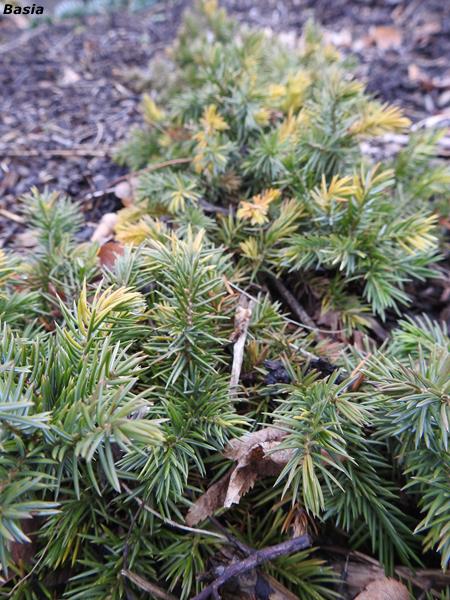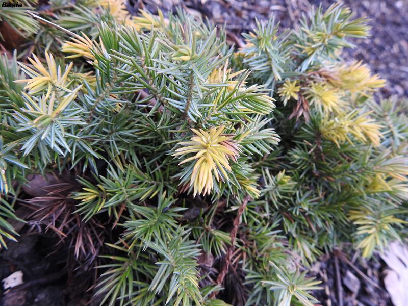 Jałowiec nadbrzeżny 'Golden Wings' jesienią zeszłego roku przesadziłam na skalniak.