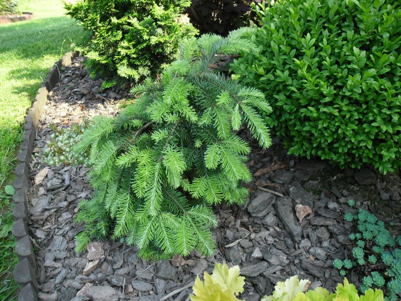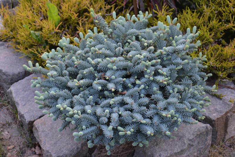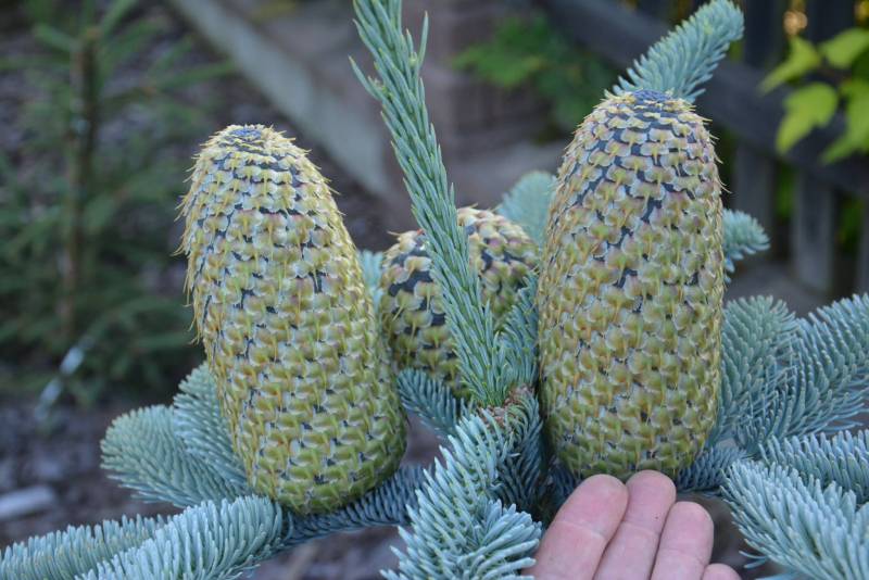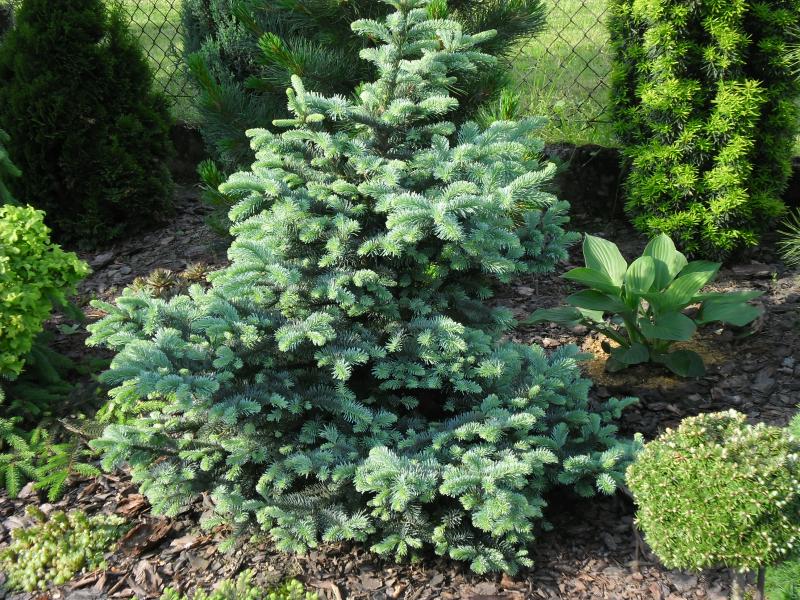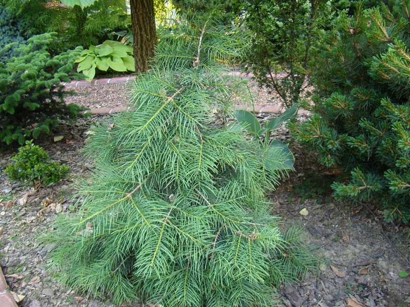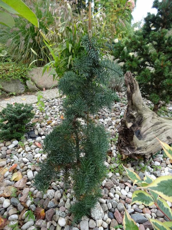 Igły zwykle 20-35 mm długości, tępo zakończone, osadzone gęsto, spiralnie, wygięte mocno do góry. Koloru od zielonoszarego do ciemnozielonego, posiadające z obu stron jasny, woskowy pasek.