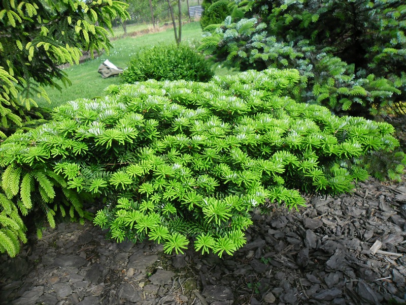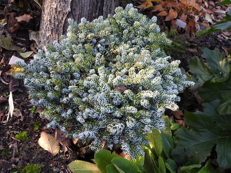 Karłowa odmiana jodły koreańskiej o pokroju płasko kulistym.