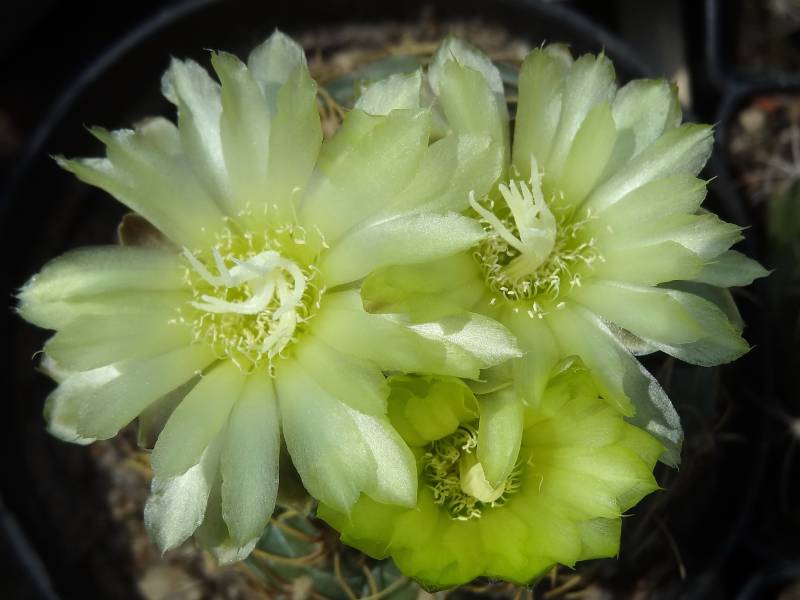 W zeszłym roku wysiałam kilka, ale już więcej tego nie zrobię - klapa w większości przypadków. Miałam nasiona 7 różnych pięknych odmianowych echinopsisów. Pięknie powschodziły i potem padły wszystkie. Jeszcze jeden dycha. Mammillaria wielkokwiatowa guelzoviana też padła.
