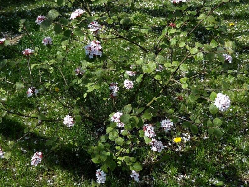 Viburnum carlesii 'Aurora' niezawodnie kwitnie, a zapach wyczuwalny z 5-6 m.