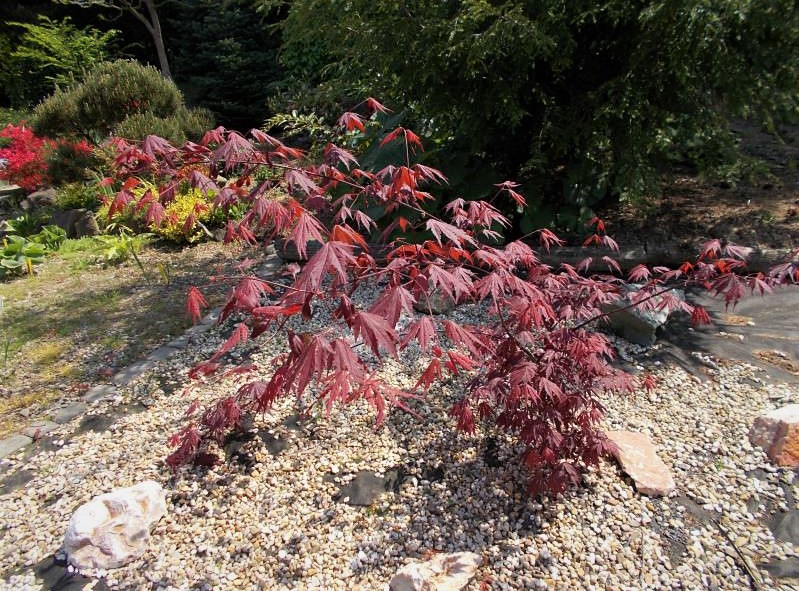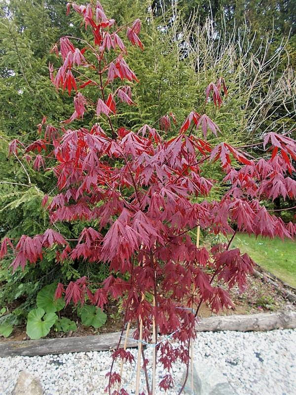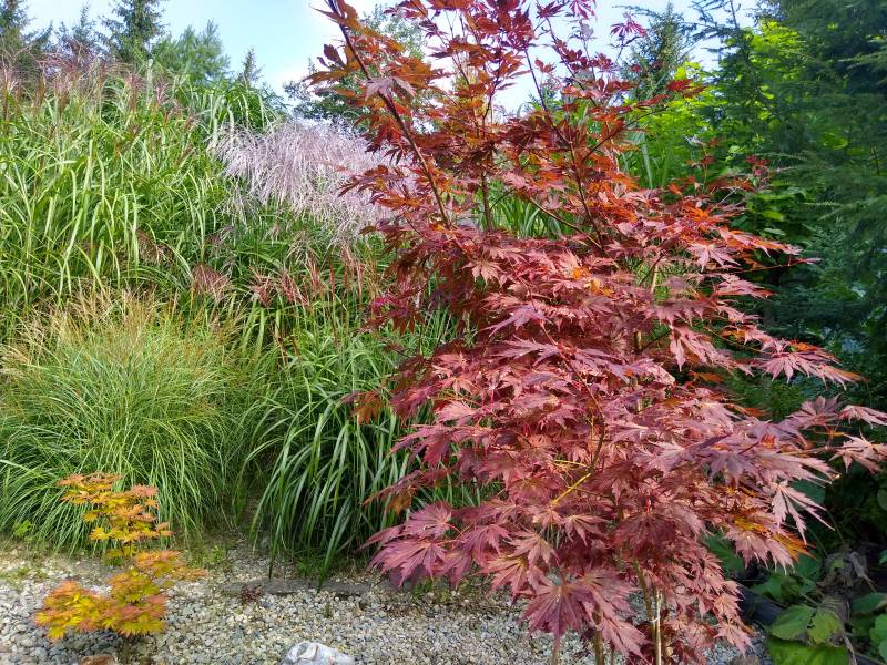 Nisko rozgałęzione drzewko o wyprostowanym, smukłym pokroju. Liście: klapowate, długości do 10 cm, piłkowane brzegiem, lekko błyszczące, ciemnopupurowe, utrzymują kolor do póżnego lata, jesienią przebarwiają się na czerwono-purpurowo. Stanowisko: słoneczne, półcieniste, zaciszne. Gleba: żyzna, wilgotna, przepuszczalna, lekko kwaśna do obojętnej.