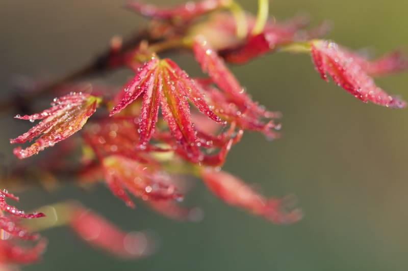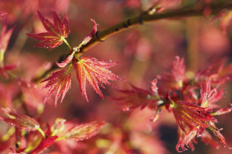 Klon palmowy Wilson’s Pink Dwarf zaczyna wiosenny spektakl (fot. 08.04.2019)