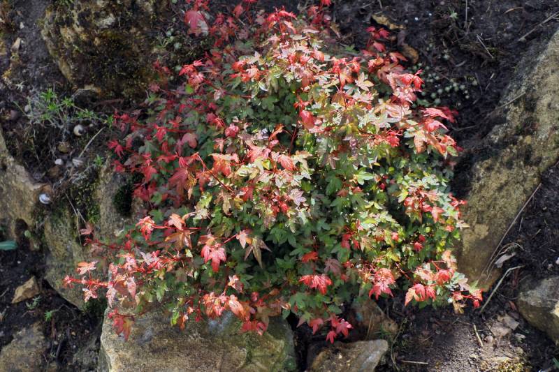 Beni Hime to karłowy klon o kompaktowym, zwartym rozmiarze i jaskrawoczerwonych młodych przyrostach. W ciągu 10 lat zazwyczaj dorasta do około 90-120 cm wysokości i 60-90 cm szerokości Pokrój: gęsty, krzaczasty, mocno zwarty o zaokrąglonym pokrój; idealnie nadaje się do małych ogrodów, pojemników i uprawy bonsai Liście: drobne, dużo mniejsze od gatunku, głęboko klapowane. młode o wyrazistym, czerwonym odcieniu, później delikatnie zielenieją; kontrast między młodymi przyrostami i dojrzałymi listkami nadaje mu pazura przez cały sezon, jesienią przebarwiają się na czerwono. Stanowisko: najlepiej półcieniste, osłonięte od zimowych wiatrów, strefa mrozoodporności: 6 Gleba: żyzna, przepuszczalna, wilgotna, o odczynie lekko kwaśnym z dobrym drenażem