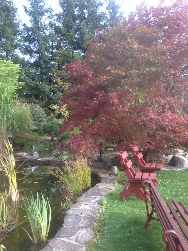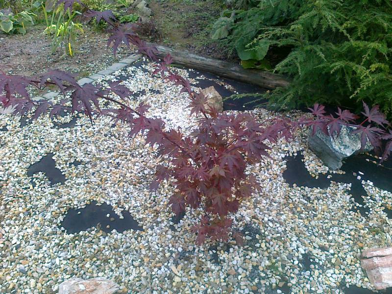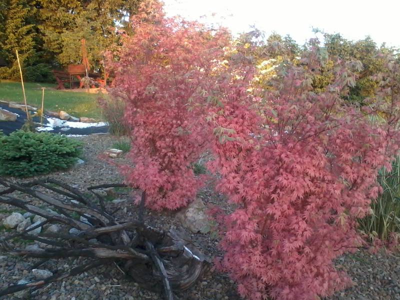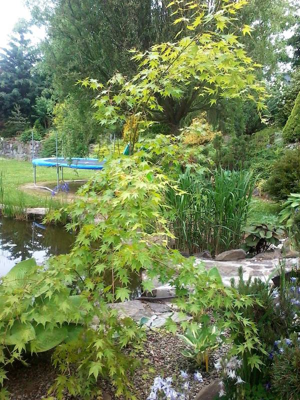 Nie ma już mojego klonika przy oczku , jeszcze ostatnie zdjęcia i 17 lat poszło w minutę . Prawdopodobnie wilgoć mu zaszkodziła . Zmieniliśmy 3 lata temu folię w oczku i nie założyliśmy jej do góry równo z ziemią , tylko została pod kamieniami ,a że w innym miejscu za mało wybrałam ziemi do poziomu tafli widać było folię i dolewałam często wodę , która właśnie uciekała pod klonika . Popękaną korę widziałam już w tamtym roku , a teraz jak zobaczyłam ,że odchodzi płatami to tylko to mi przyszło do głowy ,że sami go wykończyliśmy . Dwa mniejsze też to mają , wykopałam je dzisiaj i spróbuję ratować .