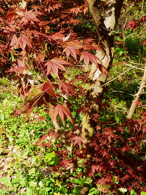 Klon palmowy 'Atropurpureum' w OB PAN w Powsinie... zdjęcia wiosenne z 9.05.2017